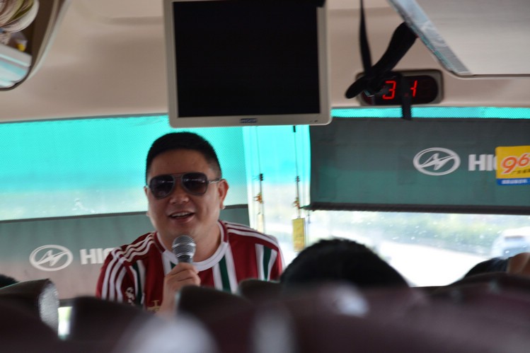 大伙們屁顛屁顛地上了車(chē),導(dǎo)游帥(da)哥(shu)就開(kāi)始搞氣氛,搞小活動(dòng),不過(guò)估計(jì)大家還是太早起床,都沒(méi)怎么搭理,也原諒我沒(méi)怎么拍幾張導(dǎo)游的帥氣照,沒(méi)辦法,性別免疫,就這么算了吧。四個(gè)小時(shí),當(dāng)然少不了我們藝光集團(tuán)總經(jīng)理張開(kāi)振先生的豪情發(fā)言,這次發(fā)言主題我只記得幾個(gè)字,玩得開(kāi)心。